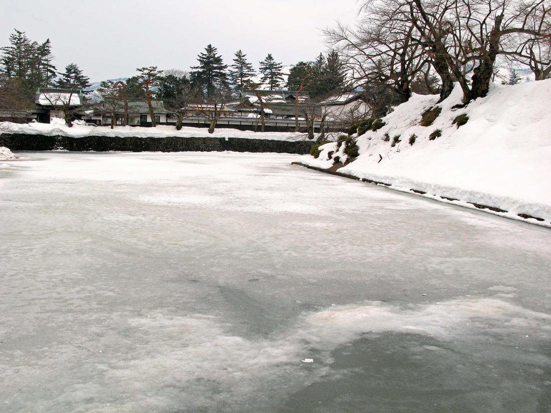 米沢盆地特有の雪深い環境が天然の堀として機能し、防御力を補強しました。他城では見られない自然環境との融合が特徴です。 -